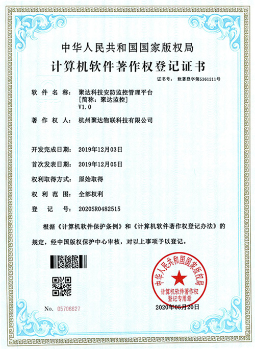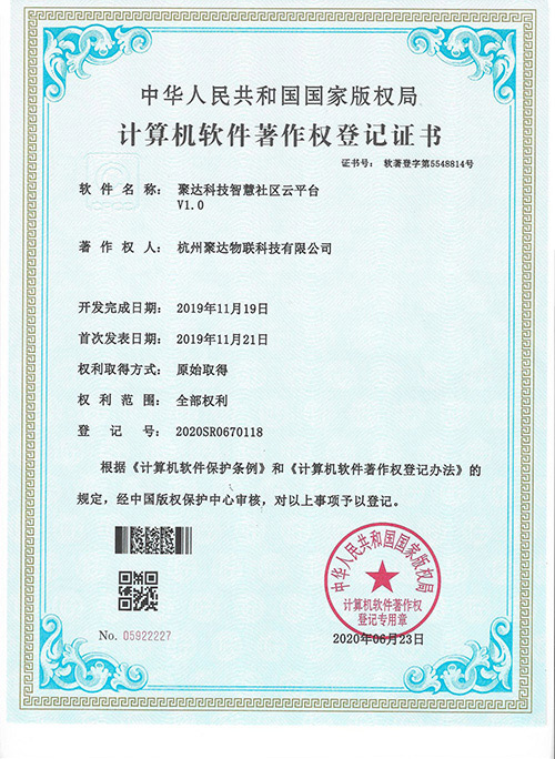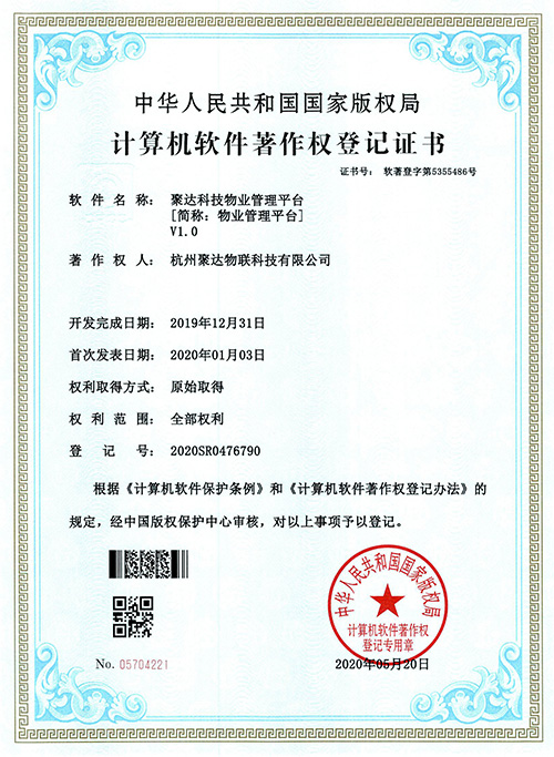 聚達物聯科技已登記多項計算機軟件著作權,包括物業管理平臺、智慧消防管理平臺、安防監控管理平臺、